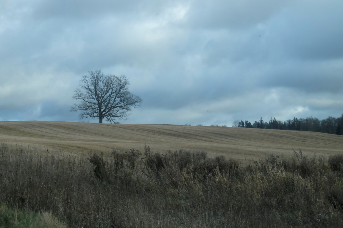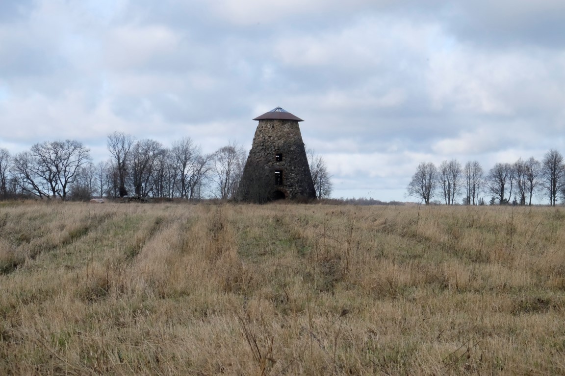Vēl pēc gabaliņa ceļa malā esoša zīme vēsta, ka līdz galvenajam varonim atlicis puskilometrs. Gar lauka malu iet arī ceļam līdzīgs veidojums, tomēr zināmas iepriekšējas pieredzes rezultātā, nolemju nemēģināt iestigt. Novietojusi spēkratu ceļa malā, tālāko gabaliņu mēroju kājām. Droši vien ir diezgan jautrs skats, kā mamzele kleitā, mētelī un zābakos ar gandrīz papēdi, laipo pa pusslapjo ceļu objekta virzienā. Lauka beigās aina ir šāda.