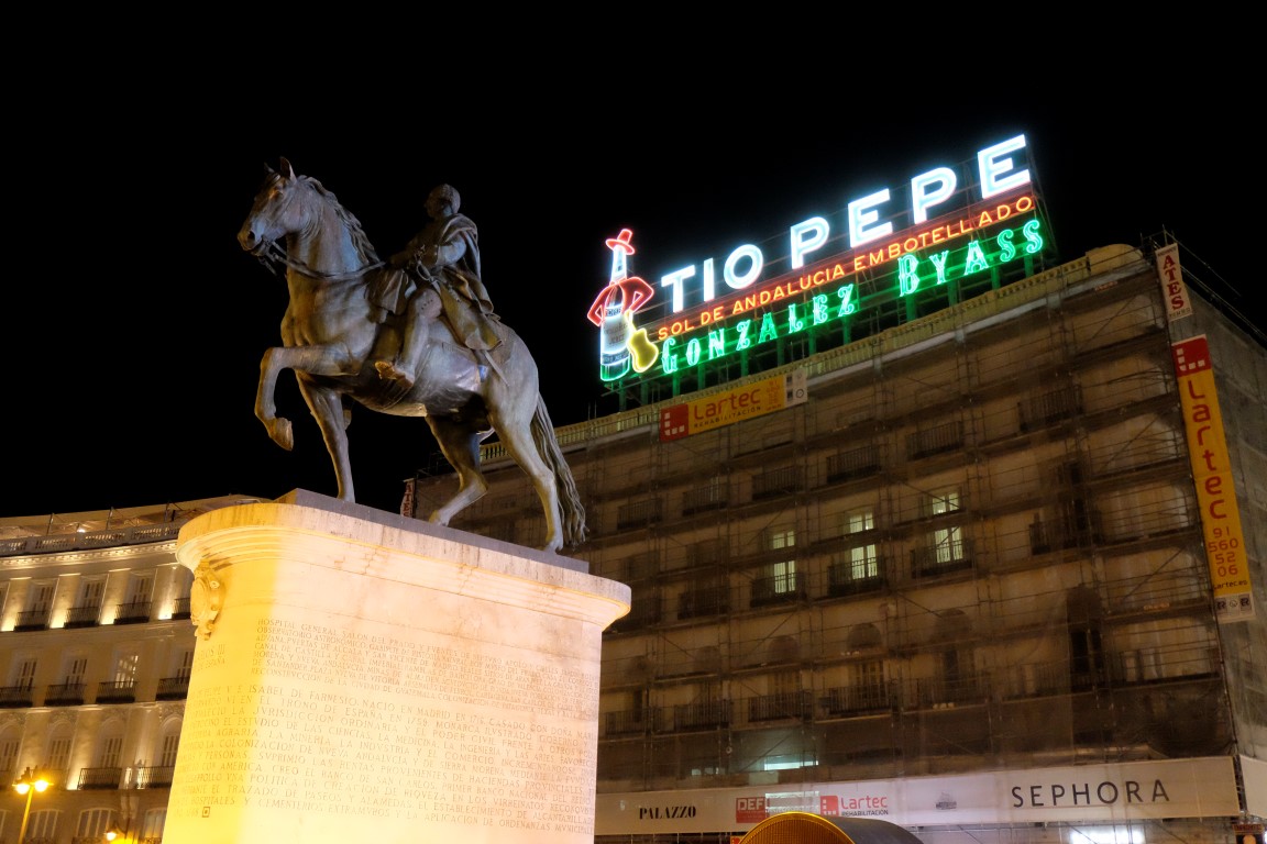 Ietraušos metro un izkāpju pieturā, kas pēc kartes izskatās pēc centra. Izejot virszemē, konstatēju, ka nekāds centrs tur nav gan. Turpinu ceļu kājām un pēc pārdesmit minūtēm nonāku dzīvā laukumā, kurā slejas vīrišķis uz zirga (kā noprotu, Madridē šādu laukumu un vīrišķu netrūkst). Nofotografējusi šo, soļoju tālāk. Eju pilnīgi uz dullo. Bez mērķa, bez plāna. Vienkārši vēroju pilsētu. Pirmās atziņas – vieglums dzīves uztverē, ko apliecina darbadienas vakarā pilnie krogi un kafejnīcas, daudz mazu un smieklīgu sunīšu (pārsvarā baltu), daudz smēķējošu cilvēku.