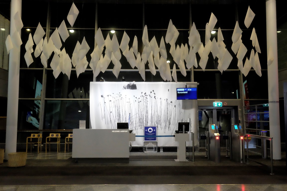 Esmu tikusi līdz šai ieraksta vietai, kad lidmašīna sāk piezemēties Helsinkos. Tur jau man zināms, kas jādara. Uzmeklēju kluso grāmatu maiņas zāli un iekārtojos rakstīšanas sesijai. Internets šeit ir super ātrs, bildes un video augšupielādējas pāris minūtes.