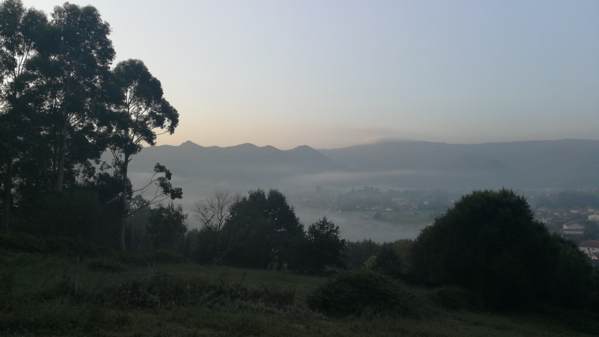 Pēdējais, ko vakar redzēju gulēt ejot, bija trīs beļģi pie vīna kausa virtuvē. No rīta skats tieši tāds pats, tikai vīna vietā kafija. Prasu, vai šiem maz gājuši gulēt, uz ko visi pārliecinoši žestikulē, ka esot vairāk nekā izgulējušies, un pazūd tumšajā rītā. Es uzvāru kafiju, sataisu sviestmaizes un, sagaidījusi gaismu, arī dodos ceļā. Par spīti pusgulētajai naktij (karstums, slāpes, krācēji, kodēji), šodien solis diezgan viegls (pagaidām). Lēnām brienu caur miglu un vēl guļošo ciematu, līdz ceļš sāk iet kalnā. Jau pēc daždesmit metriem uz ciematu paveras gleznu cienīgi skati. Mājas iesēdušās zaļumos, visu sapludina migla, tāda pasaka. Ar soli jo skaistāk. Un tad negaidīti otrā ceļa malā iznirst okeāns – tik rāms un gaišs, ka grūti no miglas atšķirt. Horizonta nav, ūdens plūdeni pāriet miglā, bet migla debesīs.