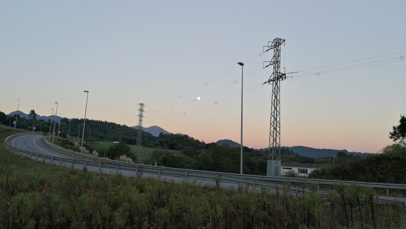 Tagad pusastoņos vēl ir viegli pustumšs, pie debesīm karājas apaļš mēness un gaisā paceļas elpas garaiņu mutuļi. Pēc pāris pagriezieniem atrodu takas malā Hildi, kura pārvelk apavus – šeit ceļš pāriet zāles takā, kas vēl rasas pilna, tāpēc slapjas kājas var dabūt uz skaitli trīs. Tā nu mēs kopā nokāpjam līdz šosejai, kur kārtējo reizi vērojams amizants skats ar bultām – daļa no tām ir pārsvītrotas, daļa ved faktiski atpakaļ. Paskatoties kartē, secinām, ka, paejot mazu gabaliņu pa šoseju, nogriezīsim nelielu apkārtceļu, pēc tam atkal būsim uz Camino. Domāts – darīts! Tā arī notiek, pēc minūtēm desmit esam atkal pie bultām.